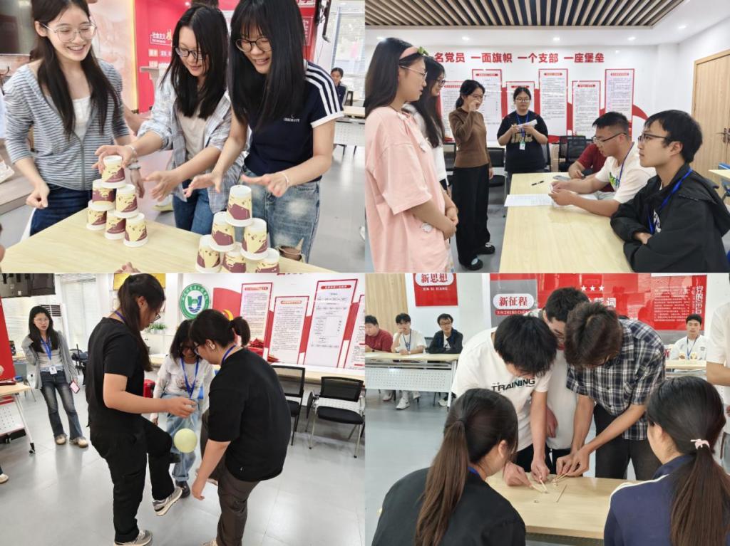 本次活动设置四项三人协作趣味环节,将心理健康理念融入沉浸式互动。纸杯攻防接力赛里,队员配合默契完成攻防转换;反向指令大闯关现场笑料频出,锤炼思维与包容心态;气球环绕大作战中,队员贴身补位,把抽象信任化作具象协作;筷叠鸿运骰环节,大家沉心静气接力挑战,在尝试中凝聚团队力量,现场始终洋溢着热烈欢快的青春氛围。