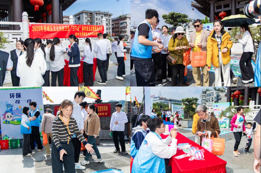 4月24日上午,由桂林理工大学、桂林市秀峰区人民政府、国家生态环境科普基地——桂林理工大学环境污染防治与生态保护实训中心联合主办的第十七届“环保春天行”系列活动暨第五届广西大学生环保科普创意大赛、第二届广西大学生环境创新设计大赛启动仪式在桂林市秀峰区滨江路逍遥楼广场举行。学校党委副书记、校长王敦球、桂林市秀峰区委副书记周琥出席会议并讲话。学校相关职能部门及学院负责人、秀峰区相关部门负责人、高校师生代表及环保志愿者代表参与本次活动。