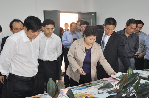 在学院成果展示厅,李康副主席一行认真翻阅了近年来学院参加的包括全国教育科学“十一五”规划教育部规划课题和新世纪广西高等教育教学改革工程重点项目等在内的多项国家级和自治区级教学研究与改革课题,对学校取得的教改成绩给予了充分肯定,连连说到“教改很重要,也很有必要。” 当了解到我院现已拥有国家级精品课程、国家精品视频公开课、国家级实验教学示范中心、国家级教学团队等8个国家级教学质量工程平台、10个自治区级教学科研平台时,李康副主席对我院取得的成果表示了充分肯定。
