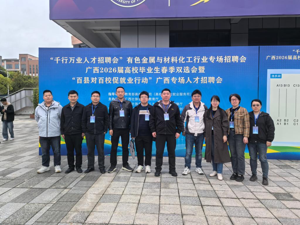 3月27日,由教育部高校学生司(高校毕业生就业服务司)指导,自治区教育厅、人力资源和社会保障厅主办,自治区高等学校毕业生就业创业指导中心、有色金属工业人才中心协办,我校承办的“千行万业人才招聘会”有色金属与材料化工行业专场招聘会、广西2026届高校毕业生春季双选会暨“百县对百校促就业行动”广西专场人才招聘会在雁山校区举行。我院各教研室主任及教师、毕业班班主任、学工组长刘砥和各年级辅导员前往双选会现场进行就业指导。